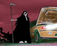 DEATH TO THE ANGEL OF DEATH (from the CD Free Brains and Dead Bodies) Piers Anthony is spinning in his grave... and he's not even dead!!! (OK, if you don't get it, read the book 'On A Pale Horse.' Trust me, it's great. mp3 format audio, 3.2 megs - style: Rokken Hair Metal |