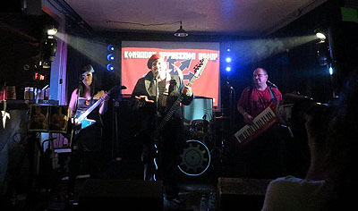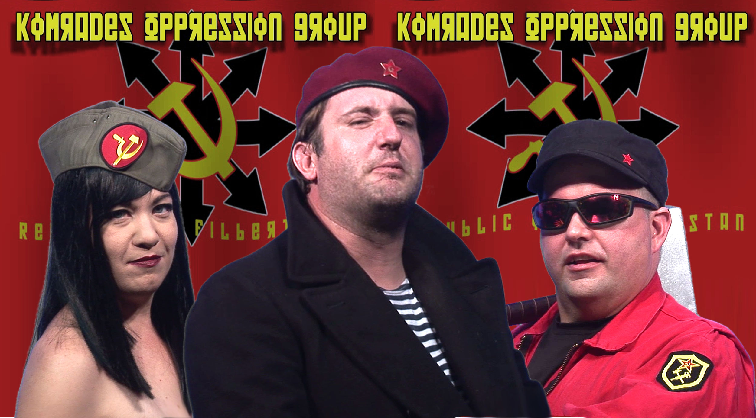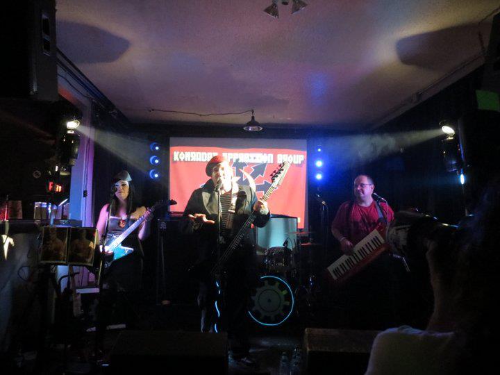 Hailing from the itty bitty country of Filbertistan (You know that Mountain Range between Kazakhstan and Uzbekistan? Well, it's the third mountain from the left), The Komrades Oppression Group (K.O.G.) sailed to America after listening to "Rush-man Radio", where it was repeated over and over that The United States was now a "Communist" nation. Consisting of guitar player/prostitute Nastya Petrolbreth, keyboardist/ironworker Ivan Stroganoff, and bassist/spokesman Sasha Sleepsindych, K.O.G. has decided to set up their main base of operations in the restroom of the local Red Star Chinese Restaurant (which they all claim is still bigger than their quarters back home). From here, they lead the proletariat masses through music in their bid to annex the city of New Orleans for their Home Nation, and for the Party, all while struggling against the so called "Evil Capitalist Masterminds": The Consortium of Genius. Performing at 'Siberia', a local nightclub sympathetic to their cause, they mistakenly believed themselves successful at assasinating their bitter enemy, Dr. Milo T. Pinkerton III, only to find a week later that he had somehow survived an .50 caliber handgun to the head at 2' range. Ivan Stroganoff was overheard linking this lack of aim on Sasha's part to symptoms of syphillis which Sasha had been complaining about during the previous month.