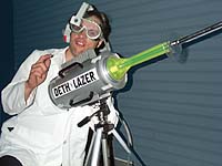 The DETH LAZER is one of the most powerful lazers in the world, although this fact is difficult to appreciate, given the thin, dim, meager looking beam emitted by the DETH LAZER. But don't let that fool you - the DETH LAZER could bore a hole through a 30' block of solid titanium if the titanium block was left sitting there long enough! (20-30 years) Unfortunately, most of the time, the owner of the titanium block returns after half an hour or so... but I digress! Mark my word, if a person were to stand in the path of the DETH LAZER, the beam would literally BORE THAT PERSON TO DETH! And DETH is not a comfortable condition to be in, mark my word!