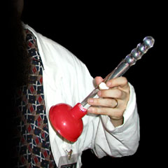 This helmet was constructed to focus brainwaves into a feed-forward amplifcation loop, amplifying the will of the wearer. For short range willpower-imposing experiments, the helmet contains a small dish antenna, but for much larger CROWD CONTROL applications, the helmet can be hooked to the Radio Terrorscope (see above) and juiced up with up to 100x more voltage. 100,000 x base level voltage would theoretically be enough to control almost every person on the planet, but is currently NOT RECOMMENDED.