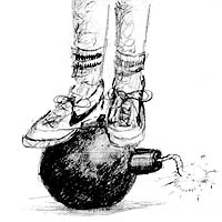 ![]() This song was an attempt by Kirk and I to record the gayest sounding Euro techno disco song EVER. I programmed this on the ESQ-1, driving the Roland TR-505, which was heavily processed through EQ and various reverbs. The keyboard solo was performed at 75% speed on the black keys, and improv'd completely on the first take. Best solo I ever wrote. The word 'dance' was sampled with distortion from Kirk's Rockman into the ART Multiverb one-shot sampler, and put down to tape on a separate track. While recording this, we decided that Kirk had a better grasp of the required vocal tone (and he was a better singer than me at this point), so I set up a mic and he tried recording. Unfortunately, the lines we were coming up with were so ridiculous that we kept cracking each other up. The only solution was for Kirk to ensconse himself in the closet with the mic and the remote for the tape machine. I left the room and came back in an hour - the result was perfect. We spent the rest of the evening making up ridiculous background lines that are heard between the verses. By the time we got to "Are you an American?" we couldn't stop laughing, but fortunately, it was also the end of the song. Credits Drums...........Lewis D'Aubin Synthesizers....Lewis D'Aubin Lead vocal......Kirk Madison Backing vocals..Lewis D'Aubin Recorded and mixed 1992 at Lewis's parents' living room, Harahan LA |