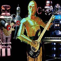 ![]() "I'll form my own band! Yeah! Drumbot's Only Parts Club Band!" This is another one of those songs that came to me... err, I mean to DRUMBOT, pretty much fully formed. Jotted down the lyrics on a sheet of paper before work, and hummed the melody into a set of headphones plugged into a computer mic jack, as there was no microphone handy (believe me, this happens a lot when inspiration strikes.) It took a little work to keep this song from directly plagiarizing its two primary musical inspirations: 'Son Be A Dentist' from Little Shop of Horrors, and 'Beauty School Dropout' from Grease, but I think I pulled it off! To make this song sound as digitally crude as possible, I initially used only FM sound card patches for the backing synth & drum tracks, and that's all it consisted of the first few times we performed (or should I say, DRUMBOT performed) it onstage. But for the album I relented and turned it over to the amazing Chad Gould of Florda band Boney Fiend for embellishment. Chad embellished it in a BIG way with 8 tracks of beeps and bloops from his wonderful analog Alesis Andromeda synthesizer. This song was added not too long after Drumbot first learned to speak, back in 2001. At that point, his character was pretty much nailed down, and it reflects in the snarky lyrics. By the time we did 'The Trial of Dr. Pinkerton' in 2004, we decided to bring this song back and give Drumbot a band of his own for the occasion, and that's what you see onscreen during the performance - many of the film and tv robots whose personalities have congealed into the Drumbot we all know and love... Credits Drums...........drumbox Synthesizers....Lewis D'Aubin & Chad Gould Lead vocal......drumbot Recorded and mixed 2004 at C.O.G. Secret Lab, Harahan LA |